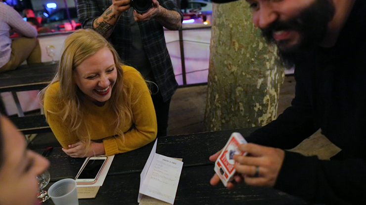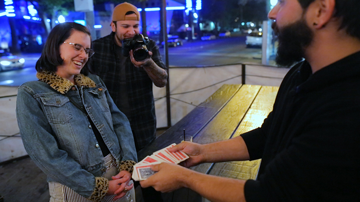 Se retira el mazo y se extiende boca arriba. Su espectador nombra CUALQUIER CARTA; SIN FUERZA de ningún tipo. SIN CUBIERTA.