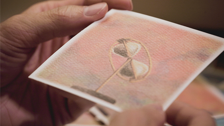 Phase 1: The magician and the spectator each SIGN their names on a card printed with an hourglass.