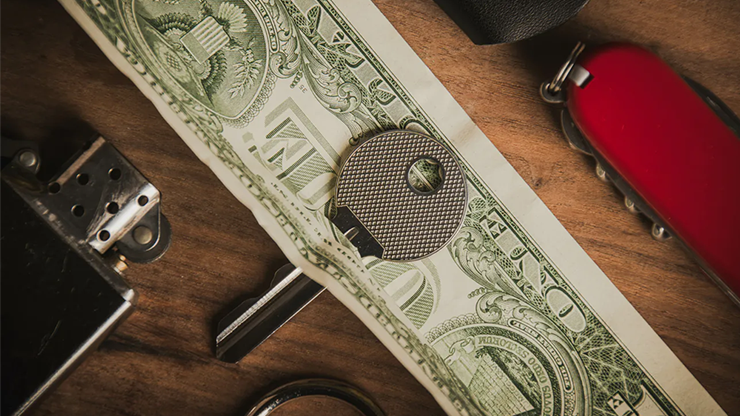 Remember the vanishing bottle, pen? Imagine performing the same illusion with Swiss Key. The spectator can feel the key wrapped in the bill and magically vanish the moment you scramble the bill.