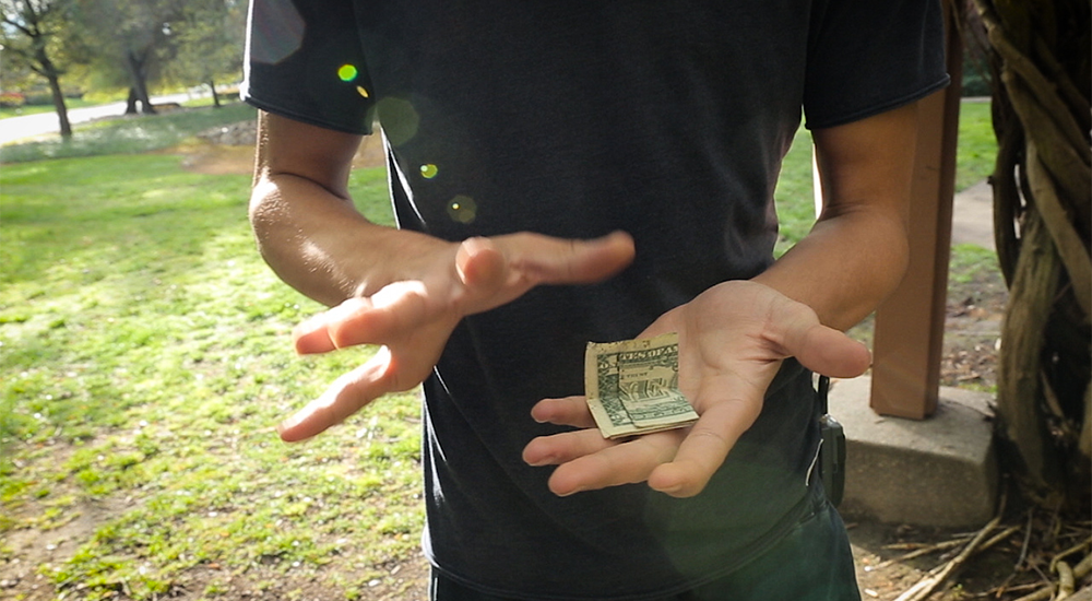 - C/M: A card is signed and folded and visually changes into a dollar. The inside of a wallet reveals that the signed card switched places with the dollar.