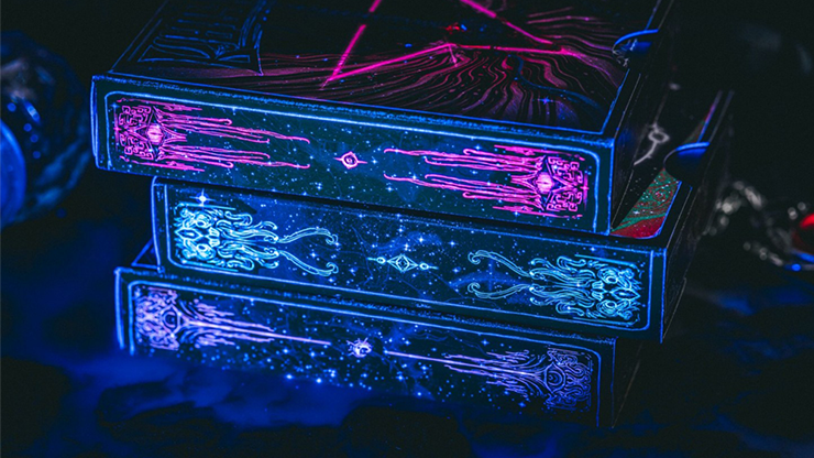 Limited Edition Hyades' Shade Collector's Box is our best collector's box yet, filled with foils and UV colors that bring the designs to life. It includes 3 decks, The Star Devourer, Pleiades Glow, and Emerald Illusion.