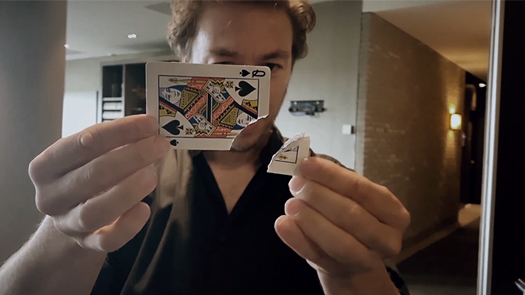 Finally the card is removed from the window and of course the missing corner matches 100%. The card may be kept by the spectator as souvenir.