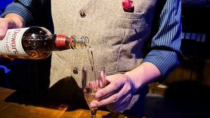 A magician hurries on to the stage, and he wants to cheer himself up with a drink before his performance. He picks up a handkerchief and shows that it is not hiding anything. The next moment, however, he produces a goblet, and it does contain wine! But the magician decides that just one drink was not enough, and the next second, he conjured up a strong glass full of wine, and drank it all again!