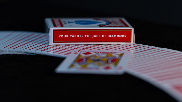 "Your card is the [Card Name]" - bold, clean text that's easy to glimpse when you need it, yet subtle enough to stay unnoticed until the reveal.