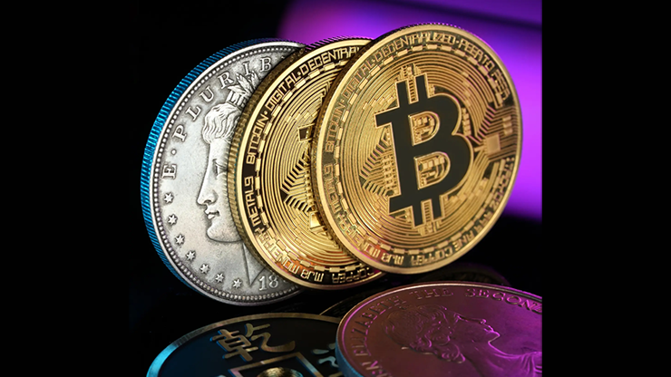 - Includes Morgan Dollar, Copper Coin, Ancient Coin, and Bitcoin