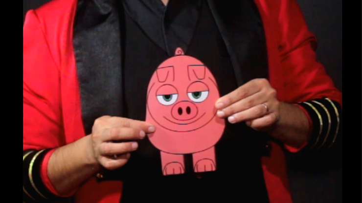It is nothing more and nothing less than a magical white chicken. the magician says it will make the chicken turn blue. The magician passes the chicken over his back, and it automatically turns blue. At that moment, the children in the audience shout desperately that they have realized the trap and that this is not magic. Finally, the magician reveals that the chicken really is magical and behind it is a beautiful little pig.