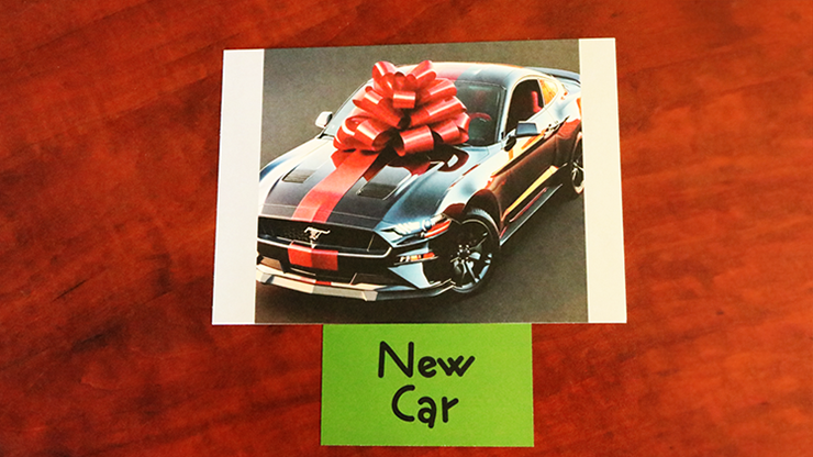 There a prediction in an envelope that remains in view the ENTIRE time. Face down, the cards are dealt on at a time and the spectator calls stop at any time! The gift is looked at by ONLY the spectator. You open the envelope to show your guess... and are wrong! What!!? But you have a second prediction in the envelope...also wrong. Your guess three and four are also incorrect!! You ask for the what the gift is and you flip over each one of your incorrect guesses and the make up a picture of the chosen gift!!