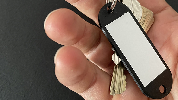 The spectator writes whatever he wants on the key tag: a room number, a date of birth, a first name, a city/country, he can even draw without ever showing it. After erasing it, you will be able to capture this thought in a blink of an eye, without your audience knowing, and then reveal it according to your own staging.