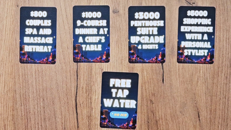 The effect: Your spectator freely chooses one of five slot-machine icon cards, hoping to hit a great prize... but naturally, they land on the worst one of the lot. They'll laugh, they'll groan, and they'll swear they should've chosen differently.